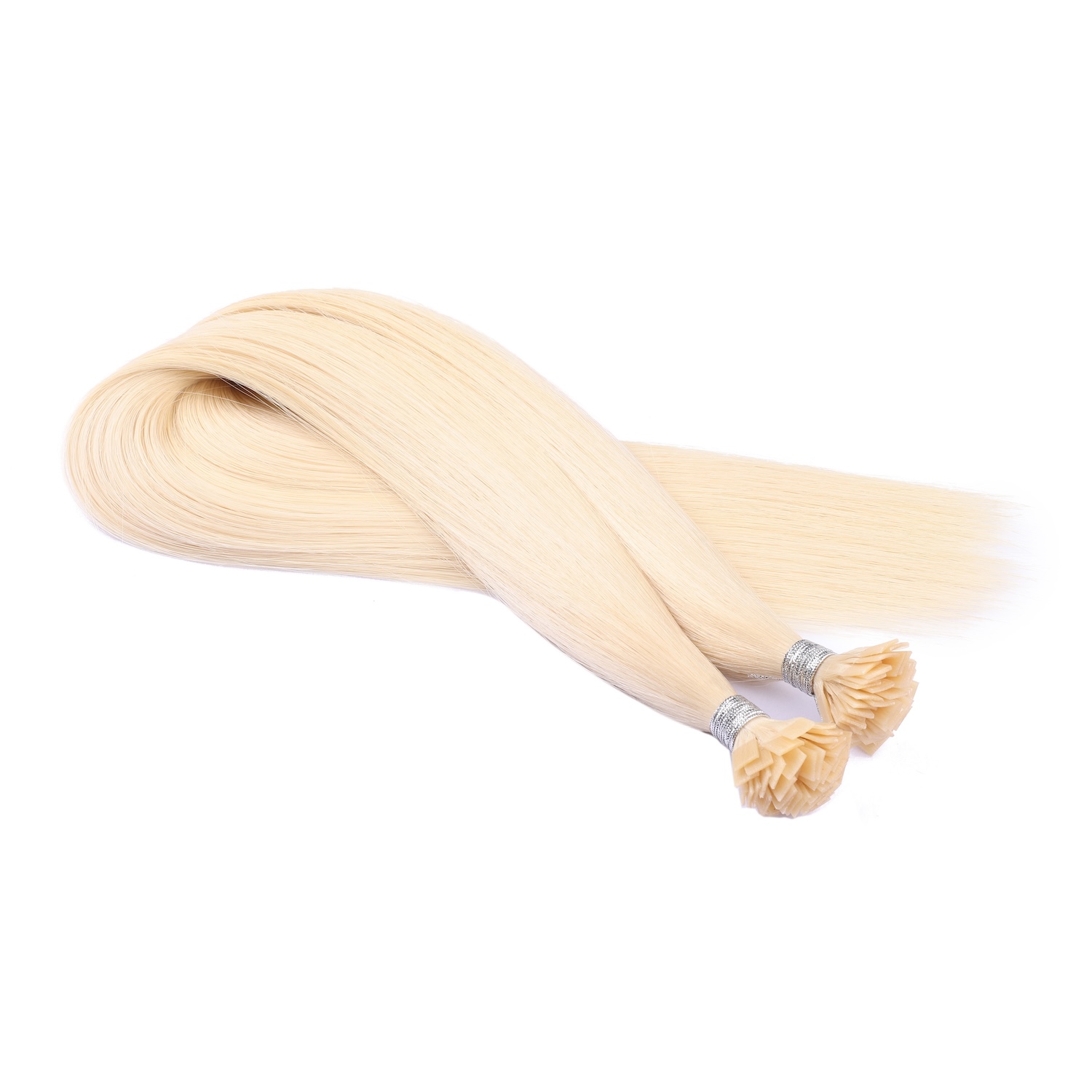 - Flat bond shape: The keratin tip is pre-bonded in a flat design, which allows it to sit closer and smoother against the scalp compared to round tips.